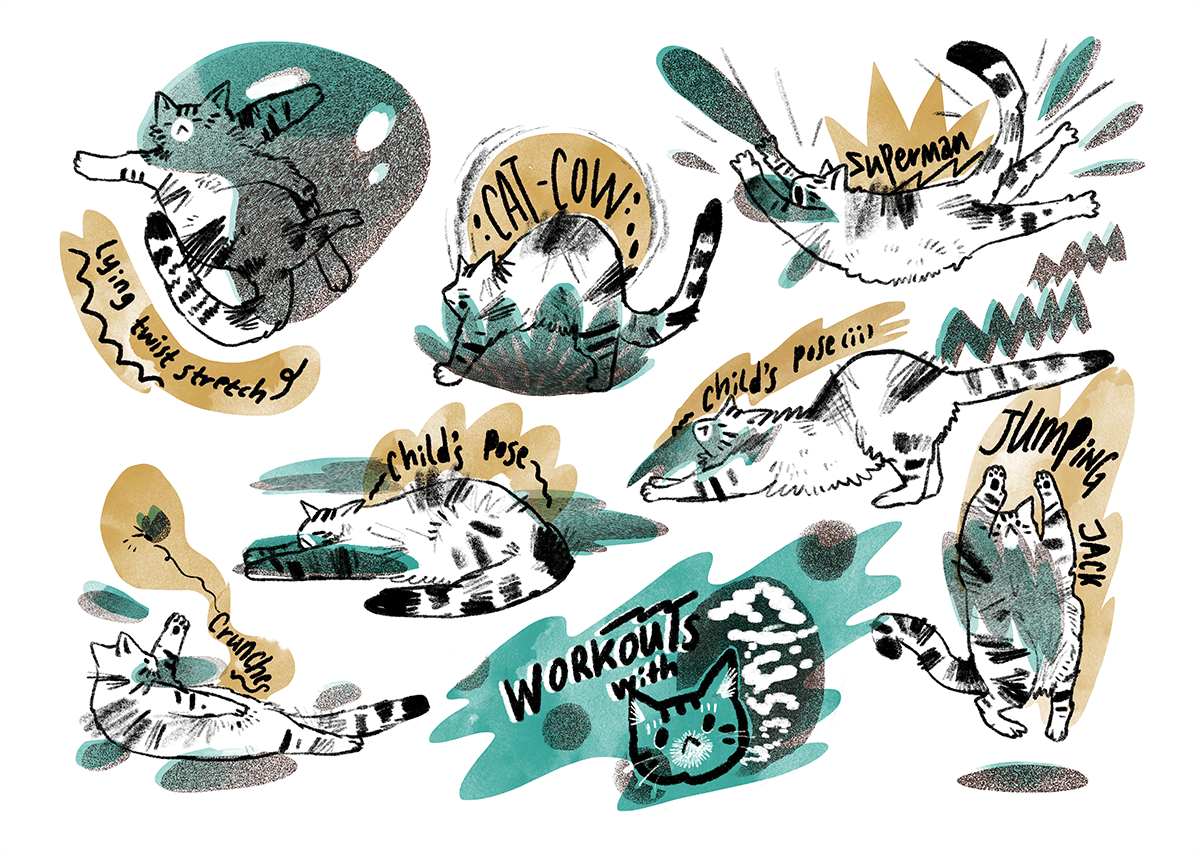 Various cat illustrations of the years
